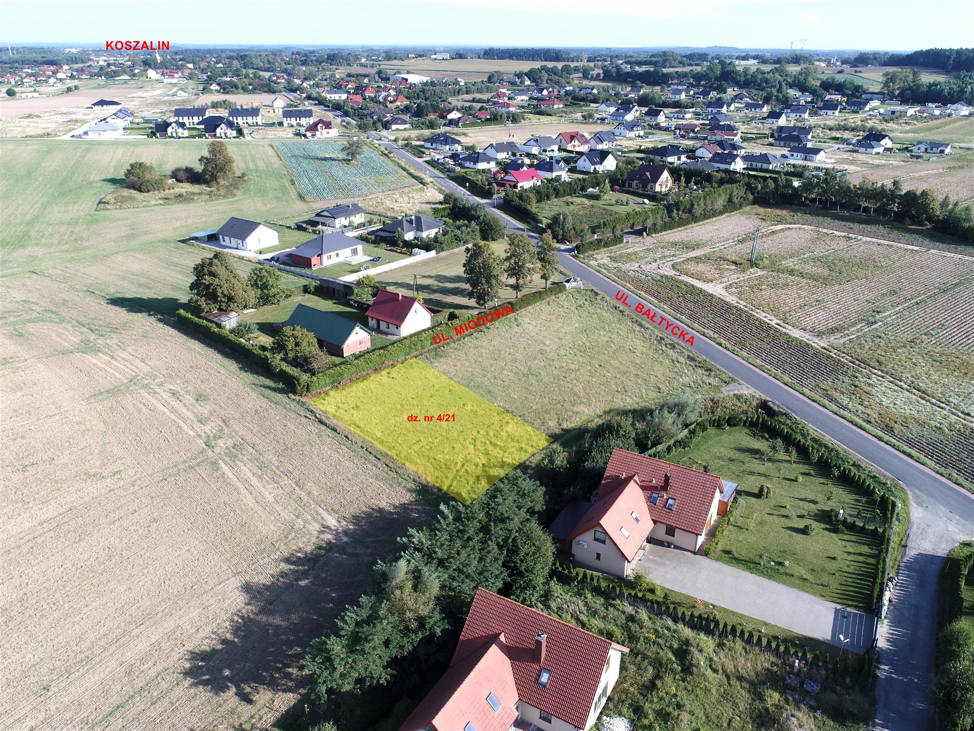 Dojazd do nieruchomości drogą gminną nr 4/9. Wszystkie media dostępne w drodze głównej – w ulicy Bałtyckiej.