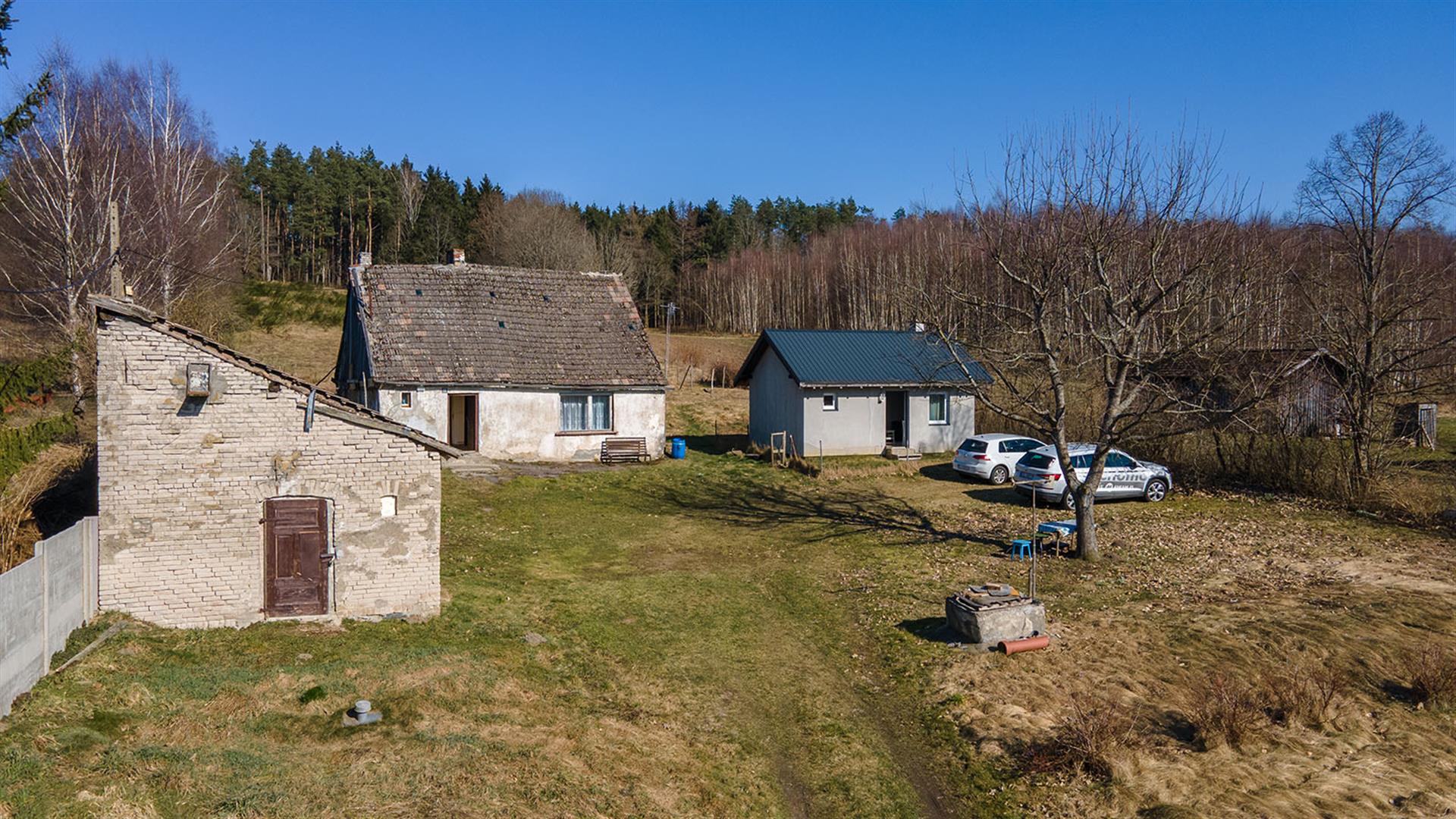 Budynek mieszkalny o pow. 80 m2 ; przedwojenny, parterowy z poddaszem, murowany, pokryty dachówką.